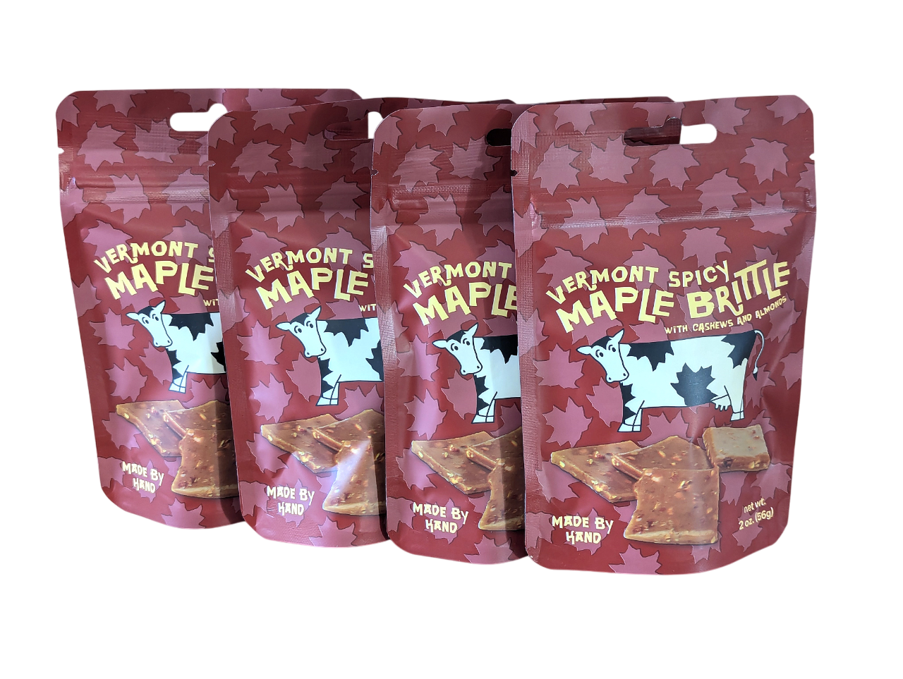 Think English toffee with crushed almonds made with pure Vermont maple syrup and creamy Vermont butter. Snapping-crisp, buttery and not overly sweet, our all-natural confection is handmade in small batches.